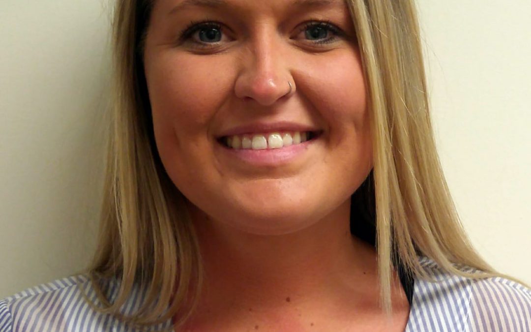 Young parenting skills educator with long blond hair smiles at camera